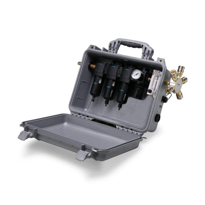 Unlike versions with a built‑in carbon monoxide monitor, the 9875‑W/O provides an economical solution where CO detection is handled by a separate device or is not required at the point of use. This portable panel meets NIOSH point‑of‑attachment requirements and is ideal for industrial respiratory protection applications in painting, blasting, manufacturing, maintenance, utilities, and similar environments.