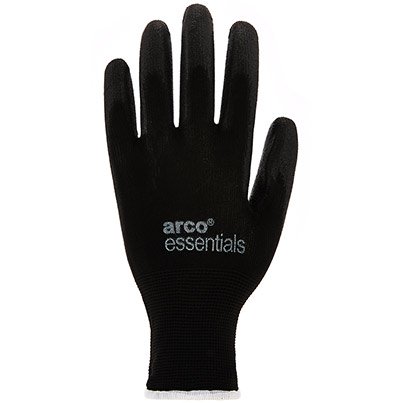 ARCO ESSENTIALS BLACK PU-COATED GLOVES (PACK OF 12 PAIRS) PN: 14A1600 (SIZE: 8)