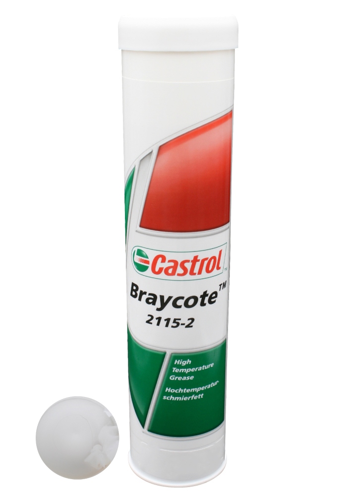 Castrol Braycote 2115-2 (previously called Molub-Alloy™ 2115) is a thermally stable, high temperature synthetic bearing lubricant. It contains lubricating solids for good wear protection and is designed to greatly extend service life and relubrication intervals in high temperature bearings, compared to conventional greases.