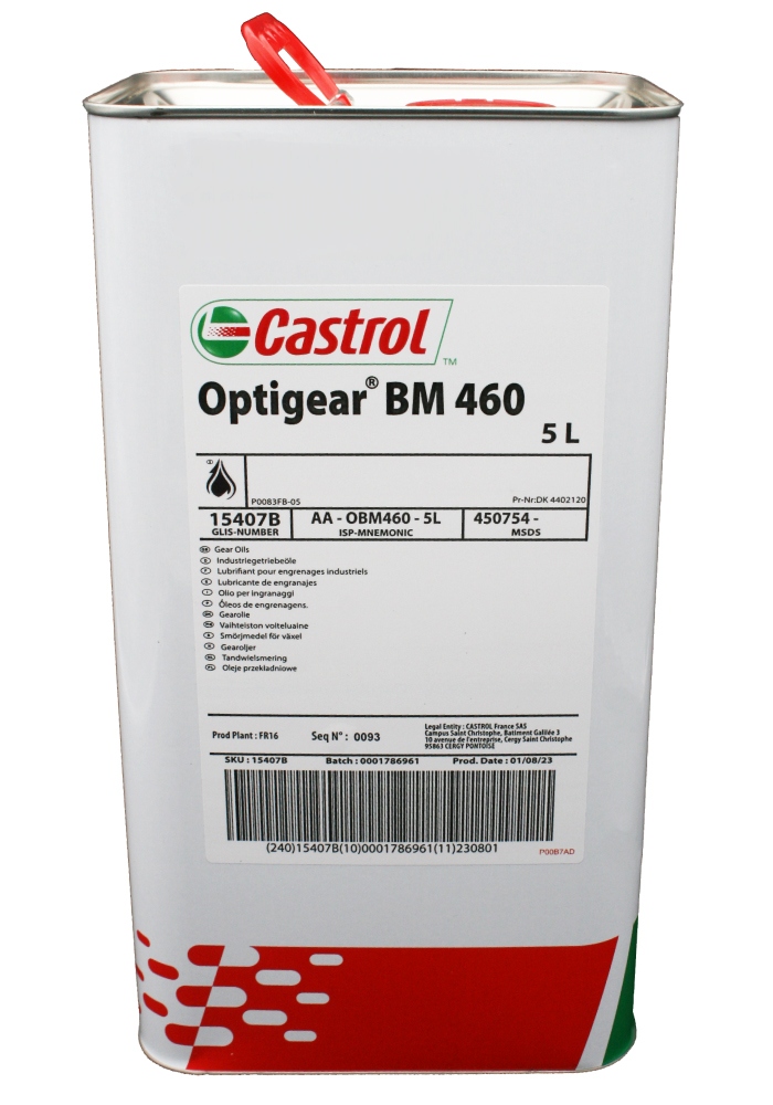 Castrol Optigear™ BM 460 is a mineral oil-based solid-free high performance gear oil (CLP, ISO VG 460). Wear problems such as abrasion, surface fatigue (pitting) or problems during the running-in phase are solved. Compatible with non-ferrous metals.